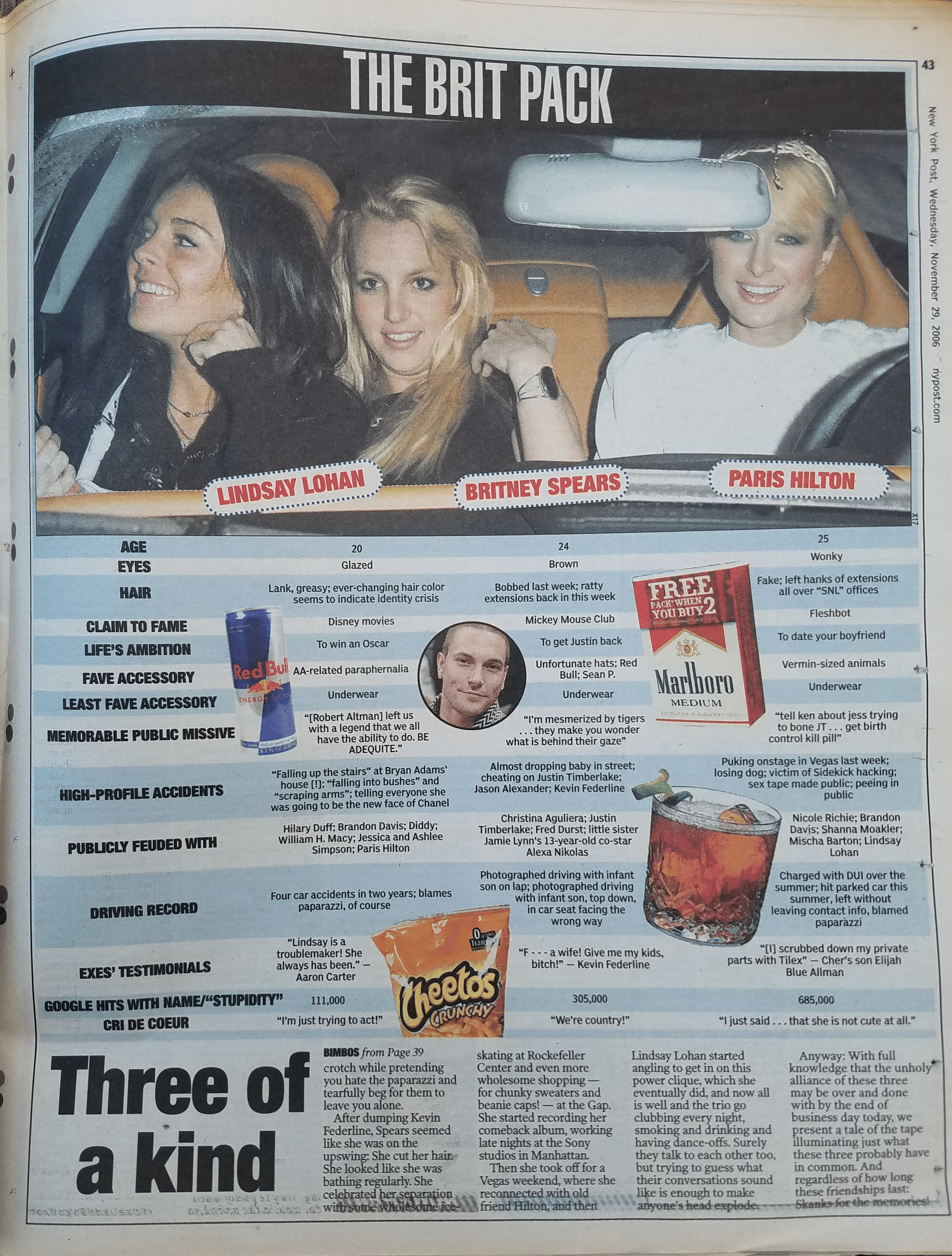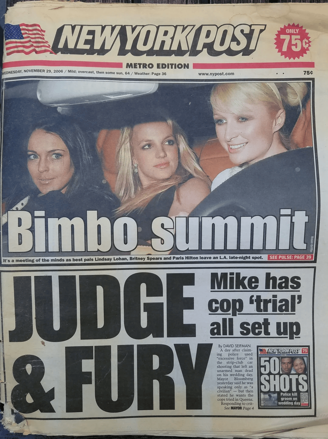 Fig. 2. “The Three Bimbos of Apocalypse,” scan of New York Post’s November 29, 2006 tabloid. Courtesy of reddit user Preesi, posted on January 3, 2023. (source)