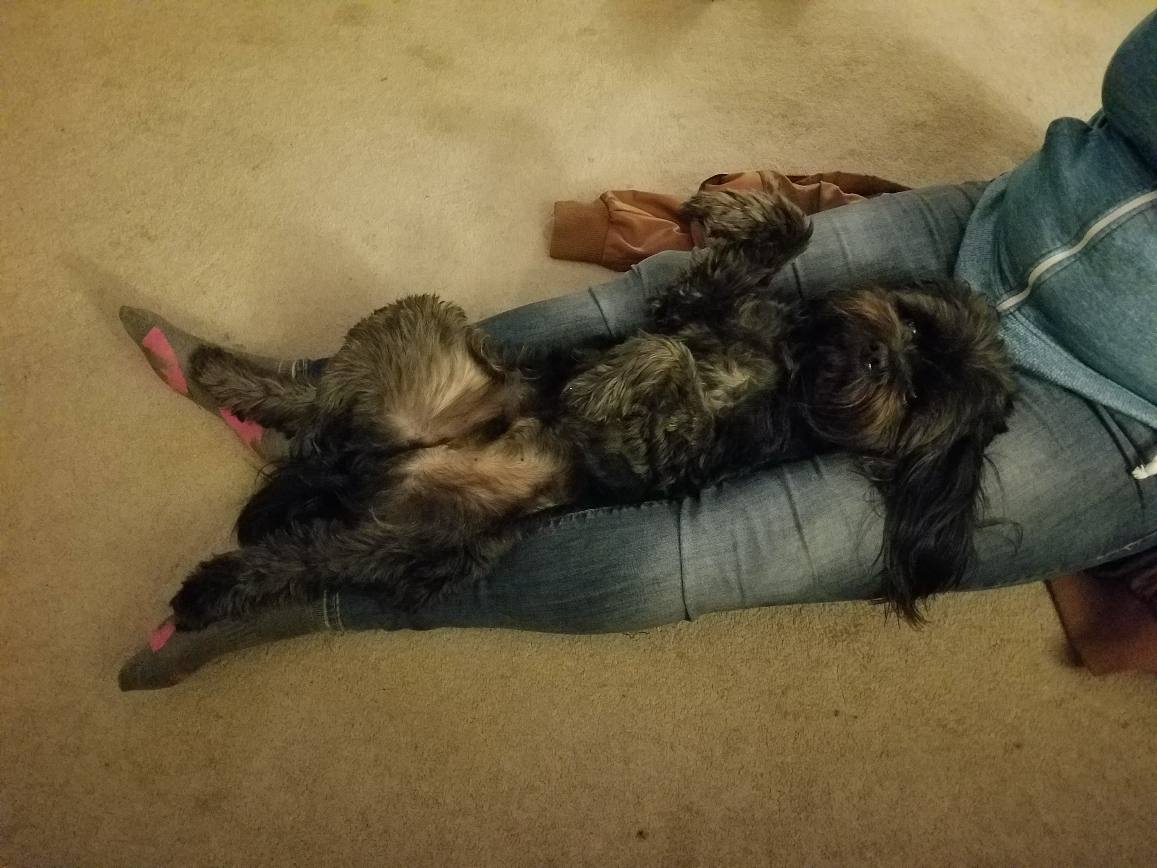I loved Ronaldo from the start, and I like to imagine that he immediately loved me, too. He might play with his sister, but he always ended his morning tug o’war by snuggling at my feet while I studied or watched TV. If I was working at my desk, my bed, or the dining room table, he was fast asleep below my feet. If I walked back and forth, putting away laundry or attending to other chores, he happily trotted behind me. He would collapse wherever he could keep me in his sightline, prepared to spring into action if I made any suggestion of movement.